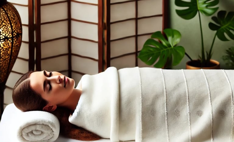 Comptez 20min supplémentaires : recouvrement du corps avec la préparation aux huiles, enveloppement, soin de 35 min, puis fin de la séance.